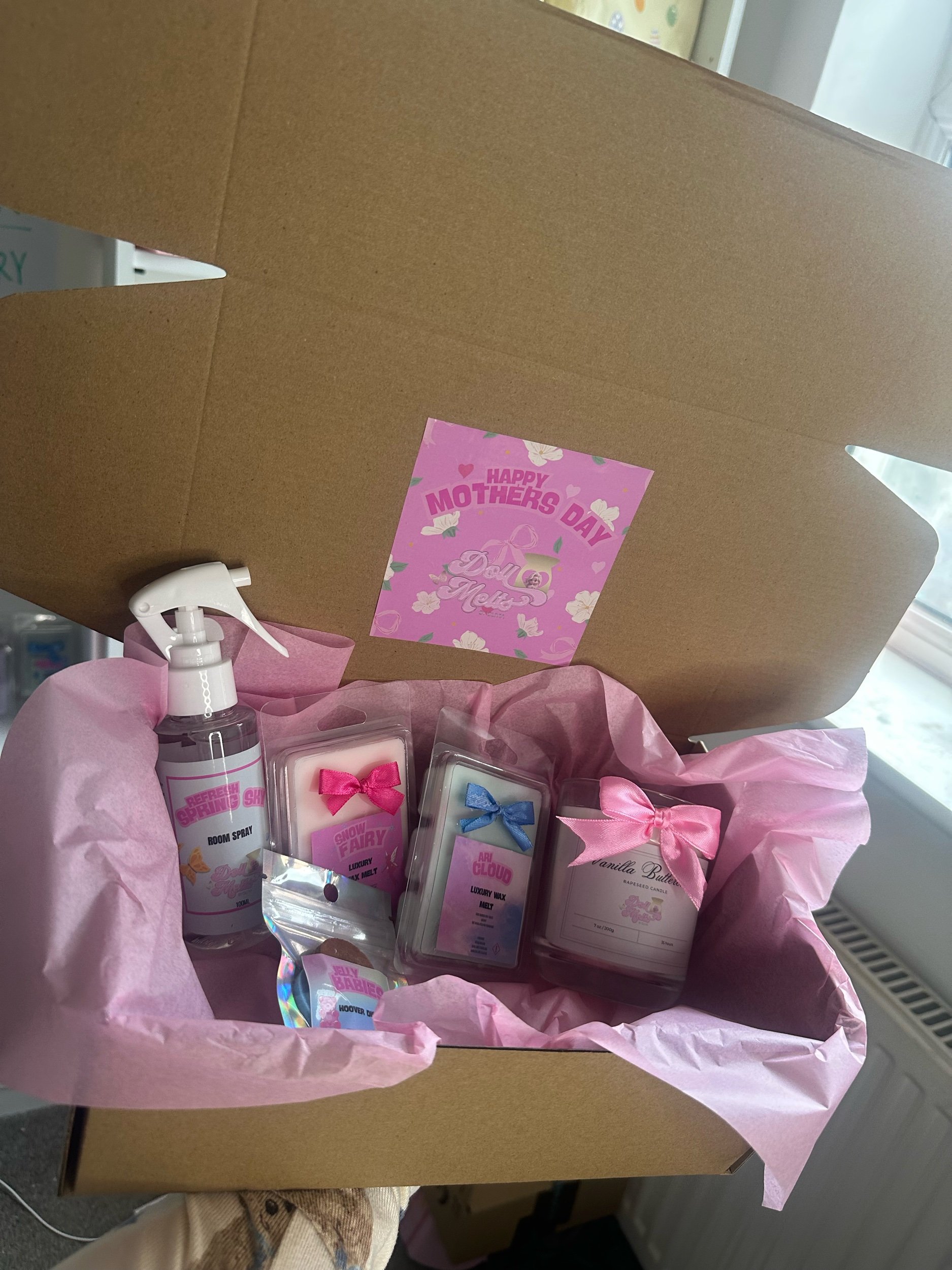 MOTHERS DAY › Large Mothers Day Box Image 1 of 1 Large Mothers Day Box £30.00 PICK YOUR OWN SCENTS🥰 Includes:1 candle2 wax melt bars 1 pack of Hoover discs 1 room spray Add To Cart Added! PICK YOUR OWN SCENTS🥰 Includes:1 candle2 wax melt bars 1 pack of Hoover discs 1 room spray Reviews Reviewer Name Review Date Star Rating Description Posted on Etsy Product Show More